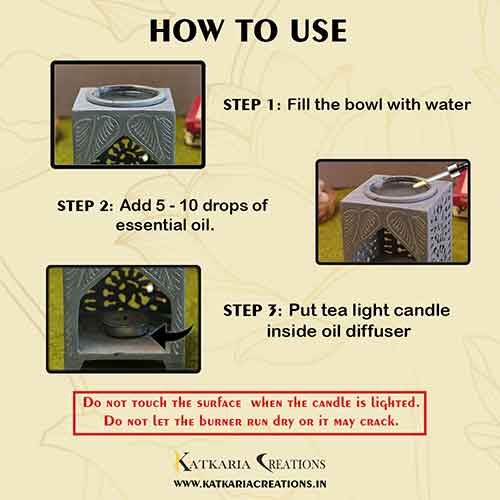 Pack Contains : Oil Diffuser, Essential Oil Bottle, Candles. Dimensions (in inches) : 3.5?x 3.5?x 4.5? (LXBXH) ; Weight : 600 gms Material Used: Export Quality Paleva Stone ; 100% Organic and Handmade. Great product for home décor, office décor, bedroom décor, yoga and meditation room. Great for gifting to friends and family on various occasions such as birthdays, anniversaries, house warming parties etc.