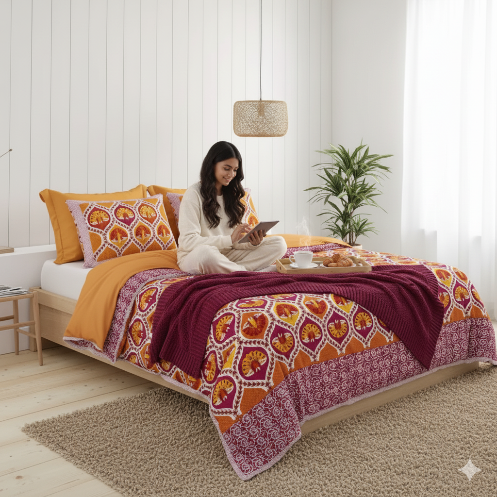 Quality That Lasts: Tired of fabrics that lose their charm after a few washes? Our bedsheet promises enduring quality that doesn't fade or shrink, ensuring a long-lasting investment. Don't let the summer heat disturb your sleep. Our lightweight yet quality material ensures a cool and refreshing sleep, making hot nights more bearable.